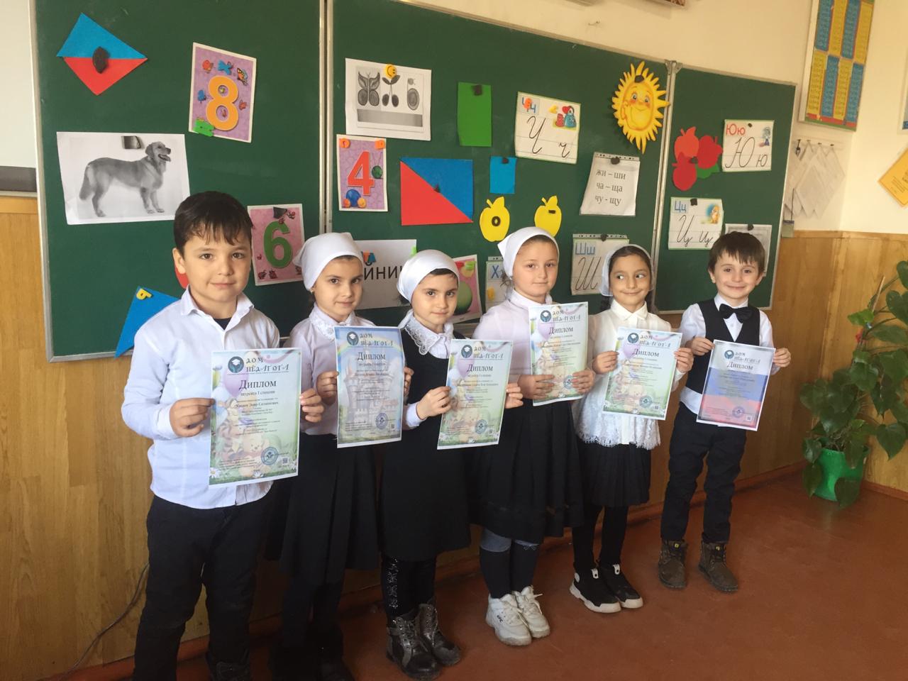 03.02.2020Ученики 1"а"класса Магомадова Сацита, Зайпуллаева Ясмина, Мазазаева Жайна, Хасуева Ясмина, Солтаматов Асхаб, Хусиев Эмир приняли участие во Всероссийской олимпиаде "Загадочная математика" и получили Дипломы лауреата 1-степени. Основной особенностью данного интеллектуального конкурса является синтез математического содержания с проблематикой экологии и защиты окружающей среды. Решая математические задачи, учащиеся познают окружающую нас природу и учатся её охранять. Изучение математики становится более занимательным, а значит, и более результативным.