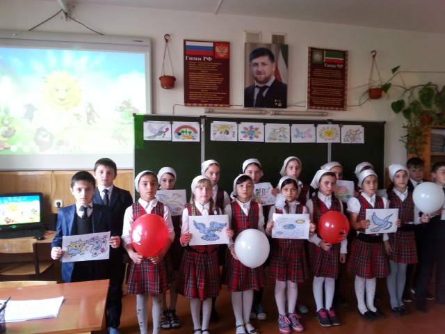 в каждом классе с 1 по 4 проведены уроки мужества по теме «Глава ЧР, Герой России Р. А. Кадыров – инициатор отмены режима контртеррористической операции в ЧР», а в 4 «а» и 4 «в» - «16 апреля – День Мира».