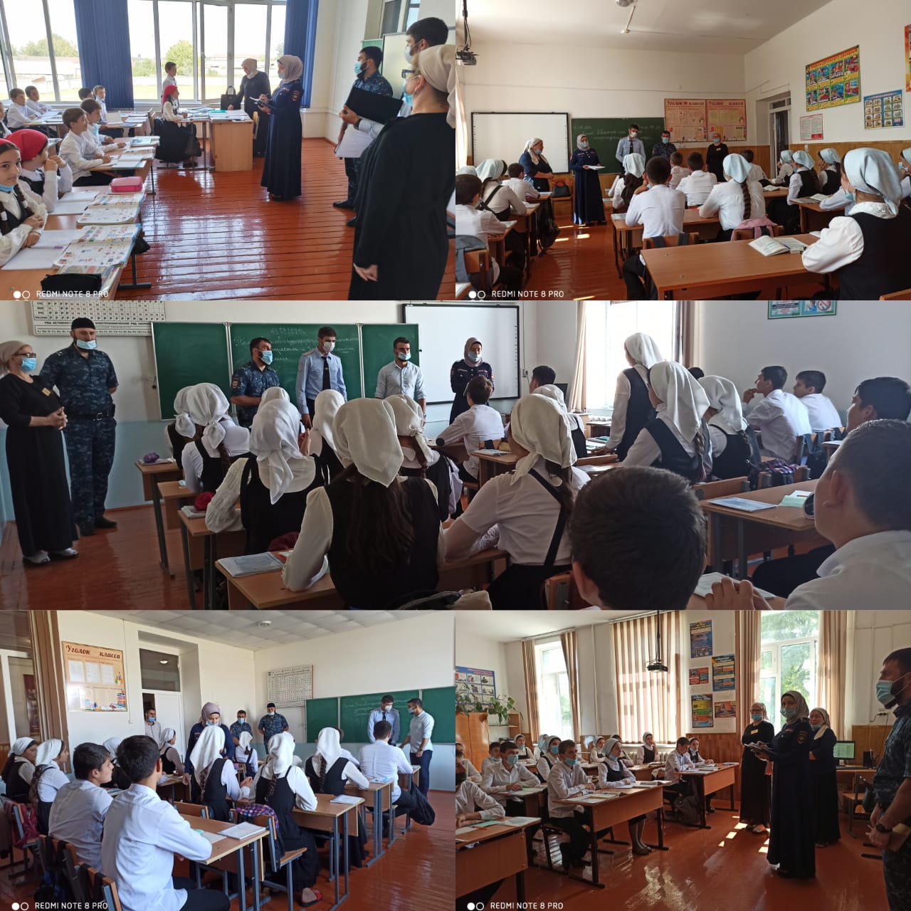 15.09.202015.09.2020 с целью профилактики преступности в молодежной среде, а также других правонарушений и преступлений, совершаемых несовершеннолетними,была проведена встреча инспекторов ПДН и ПДД с учащимися в школе. На встрече присутствовали: инспектора ПДН и ПДД Сулейманова А. Х-М.мл. лейтенант полиции Вадилов А.А., Муслимов А.А. – ОГБДД.