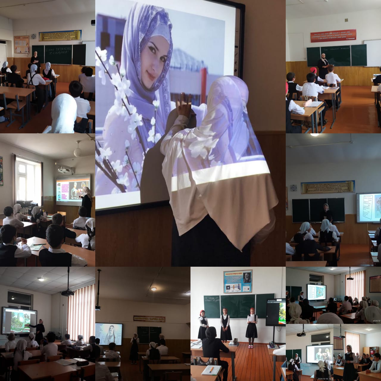 С 16.09 по 19.09.2020 г. во всех классах прошли беседы, классные часы на тему: «Достояние народа-чеченская женщина».