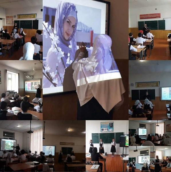 С 16.09 по 19.09.2020 г. во всех классах прошли беседы, классные часы на тему: «Достояние народа-чеченская женщина»