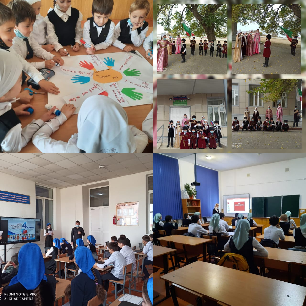 19.10.2020С 19.10 по 03.11.2020 г. в школе проведены мероприятия, посвященные Дню народного единства и примирения.С 19.10. по 03.11.20г. учителем обществознания Юсуповой Э.А. проведены беседы с обучающимися 8-11 классов на тему: «Если народ един, он не победим!»С 19.10. по 03.11.20г. проведены классные часы на темы: «Мы вместе сильны! Мы едины!»22.10.20г. классный час ко Дню народного единства провел Межиев З.И. в 7в классе.2.11.20г. в 6б классе классный руководитель Пашаева З.Р. провела классный час на тему: «4 ноября- День народного единства».3.11.20г. открытый классный час в 6г классе на тему: «Единством Россия сильнее» провела классный руководитель Ташухаджиева Х.Ш.