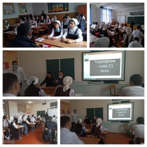 12.11.202012.11.2020 г. проведены беседы с учащимися 7-11 классов на тему: «Терроризм - чума 21 века». Цель беседы: формирование у молодежи устойчивого негативного отношения к идеологии терроризма. Задача: противостоять этому злу, уберечь молодое поколение от влияния терроризма.