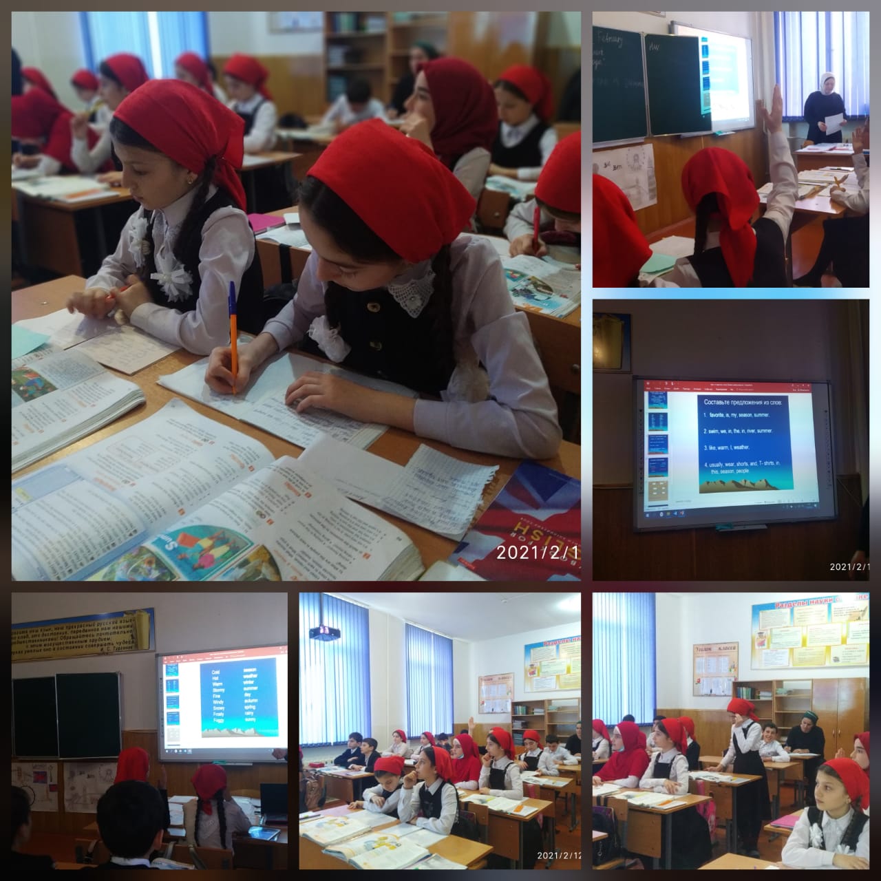 В рамках предметной недели 12 февраля учителем английского языка Байраковой Х.З. проведен открытый урок в 5а классе на тему "Времена года"