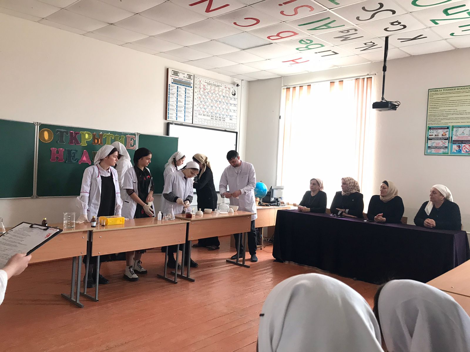 28.03.2022В рамках реализации национального проекта «Образование» и федерального проекта «Современная школа»,28 марта 2022 года в МБОУ «Цоци-Юртовская СШ №3» состоялось открытие предметной недели химии, географии и биологии. Провели его учащиеся старших классов под руководством учителя химии Тасуханова Аюба Арабовича. Такое мероприятие не только развивает интерес у учащихся к предмету "Химия", но и знакомит учащихся со свойствами некоторых веществ, знакомых учащимся по повседневной жизни. Были проведены такие опыты, как «Дым без огня», «Вулкан», «Вода-хамелеон».