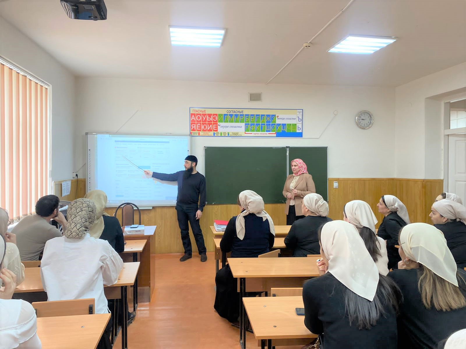На семинаре присутствовали: директор школы Замхаджиева Петимат Элимпашаевна, учителя-предметники и учителя начальных классов.