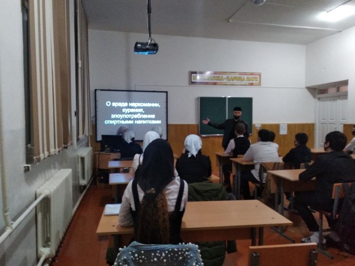 12.04.2022 г. проведены беседы с учащимися 7-11 классов на тему: «О вреде наркомании, курения, злоупотребление спиртными напитками».