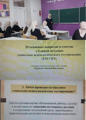 16.09.2022В МБОУ «Цоци-Юртовская СШ №3» во исполнение приказа Министерства образования и науки ЧР от 05.09.22г. №1245-п «О проведении социально-психологического тестирования» 16 сентября педагогом-психологом проведена разъяснительная беседа с педагогами школы.