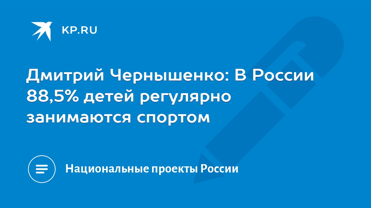 29.09.2022В России 88,5% детей регулярно занимаются спортом. Об этом сообщил заместитель председателя Правительства России Дмитрий Чернышенко.
