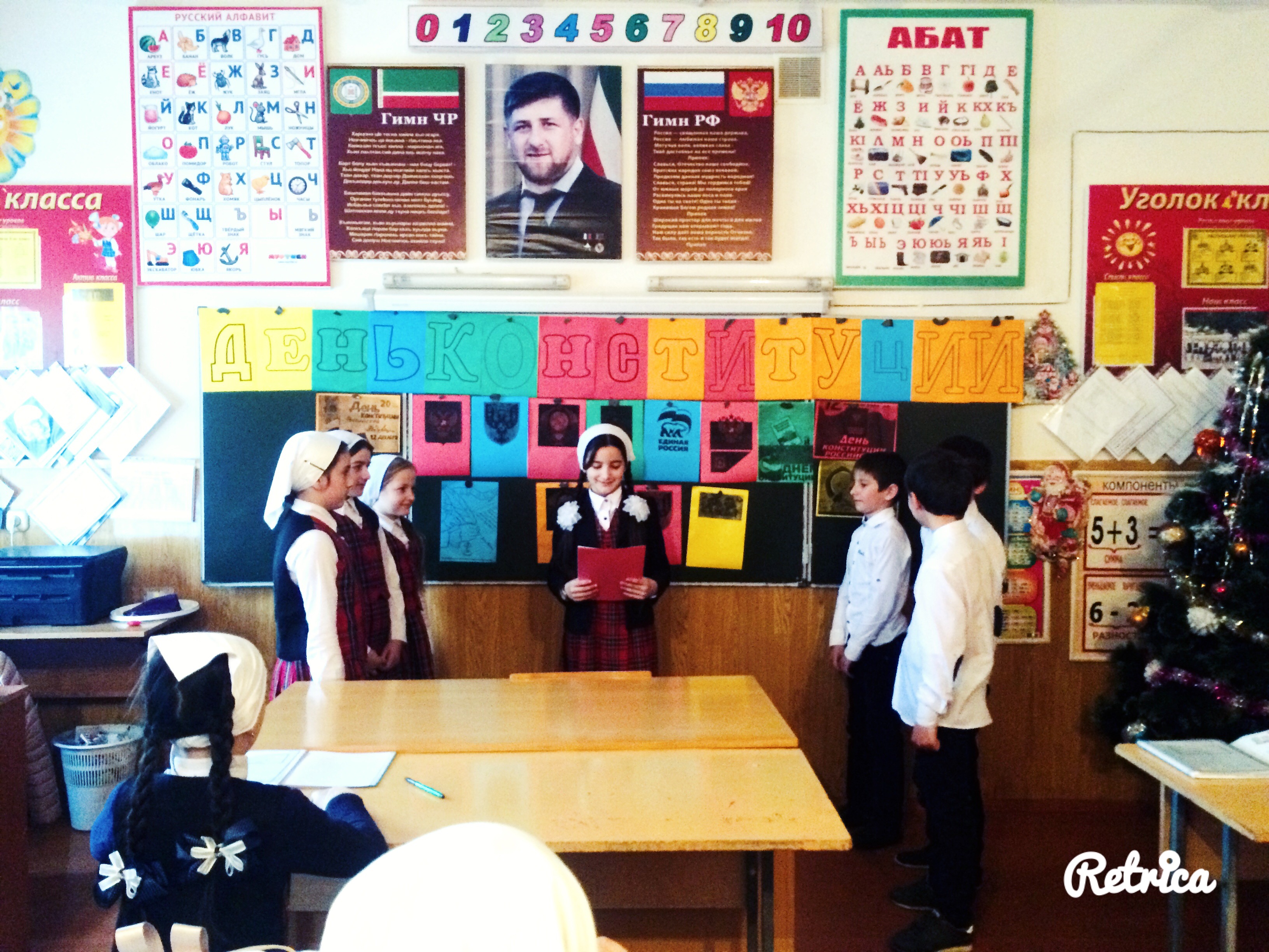 10.12.2016 г. в МБОУ "Цоци-Юртовская СШ №3" классный руководитель Керимова Лимани Идрисовна провела классный час посвященный Дню Конституции РФ в 4 "в" классе