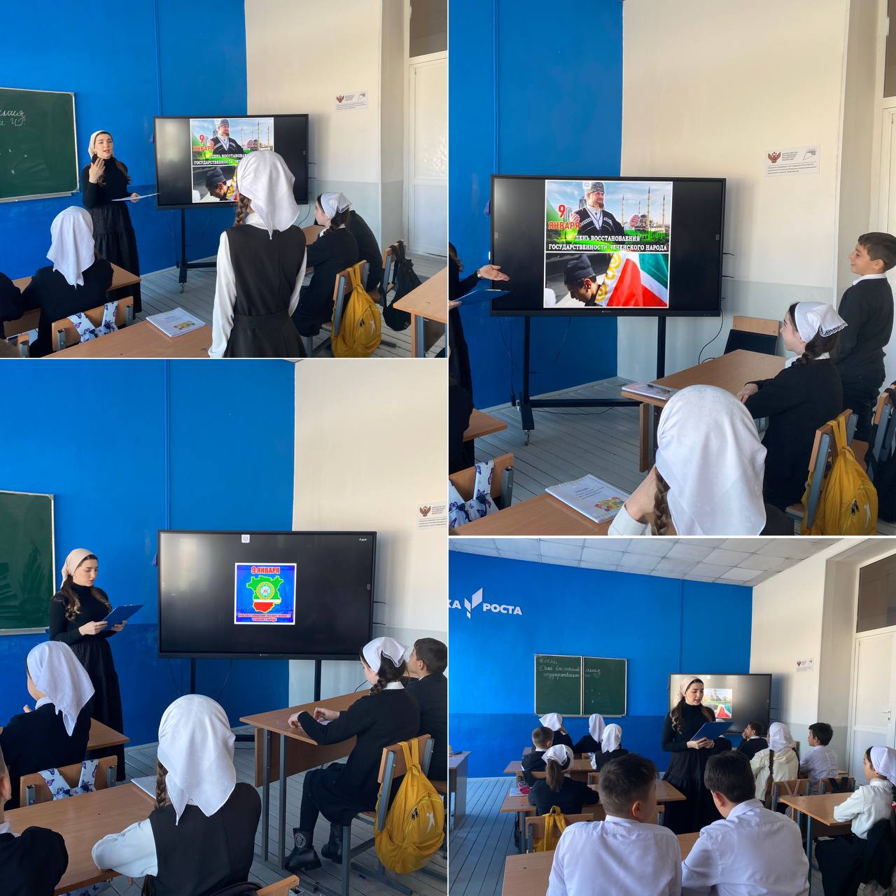 14.01.2023В МБОУ «Цоци-Юртовская СШ №3» 14.01.2023г. в 5 «д» классе провели классный час на тему «День восстановления государственности ЧР», кл.рук. Хириханова А.М. Сегодня мы вспоминаем тех, кто погиб в пути, кто навсегда остался на чужбине, и тех, кто сумел выстоять и вернуться из забвения на родную землю. Народ, с честью переживший годы депортации - величайший пример силы духа и мужества, любви к своей Отчизне!