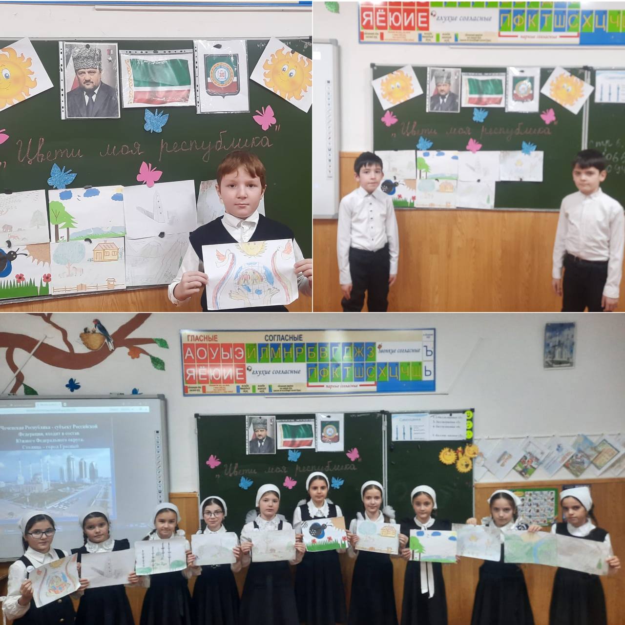 13.01.202313.01.2023г. В МБОУ "Цоци-Юртовская СШ №3" в 3"А" классе под руководством классного руководителя Мусаевой Э.Я. проведен конкурс рисунков на тему "Цвети моя республика" Цели и задачи конкурса: -воспитания у школьников патриотических чувств, любви к родному краю; -развивать познавательный интерес через знакомство с достопримечательностями, природой нашего края. Ребята представили на конкурс свои работы, где отразили красоту природы родного края,ведь у нас самое чистое небо, самое яркое солнце, самые красивые цветы. А также здесь самые добрые, талантливые и замечательнве люди.