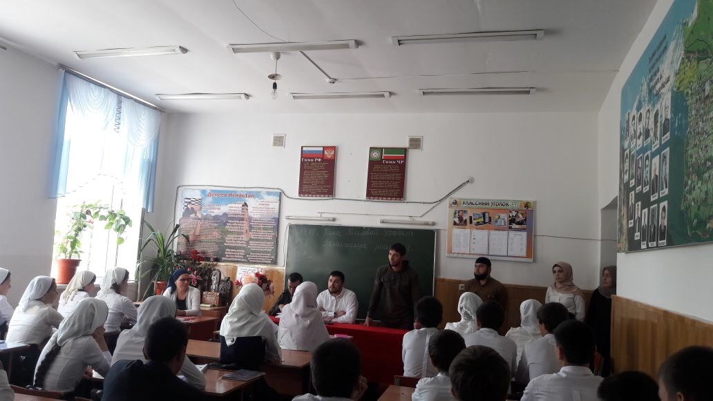 14.09.2017С целью профилактики преступности в молодежной среде, а также других правонарушений и преступлений, совершаемых несовершеннолетними, 14 сентября 2017г. в школе была организована встреча учащихся с представителями Министерства ЧР по делам молодежи, представителями Молодежного парламента Курчалоевского района.