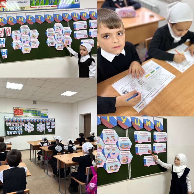 Главный закон нашей страны сегодня – это Конституция, которая содержит список самых главных правил. Их должны соблюдать все жители нашей страны» - отметила классный руководитель 1 "в" класса Минкаилова Тамила Сайд-Магомедовна.