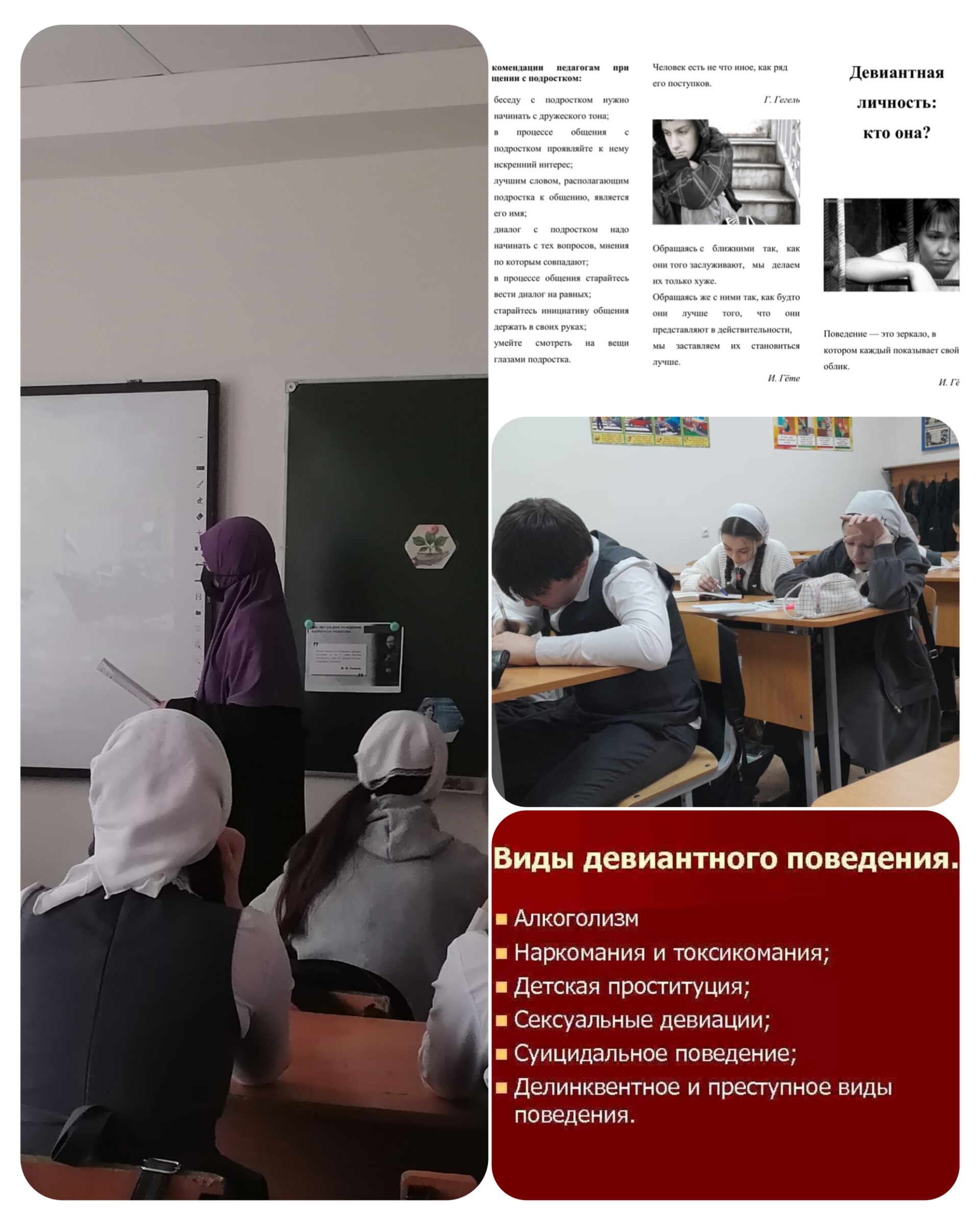 10.01.2025Педагог-психолог "МБОУ Цоци-Юртовская СШ №3" напоминает о необходимости проведения профилактических бесед с учениками средней и старшей школы! Были проведены мероприятия в рамках внедрения Памяток («Навигатор профилактики») в работу педагогов-психологов, социальных педагогов, классных руководителей и иных педагогов. Отклоняющееся поведение - самый враг современного образования и общества.