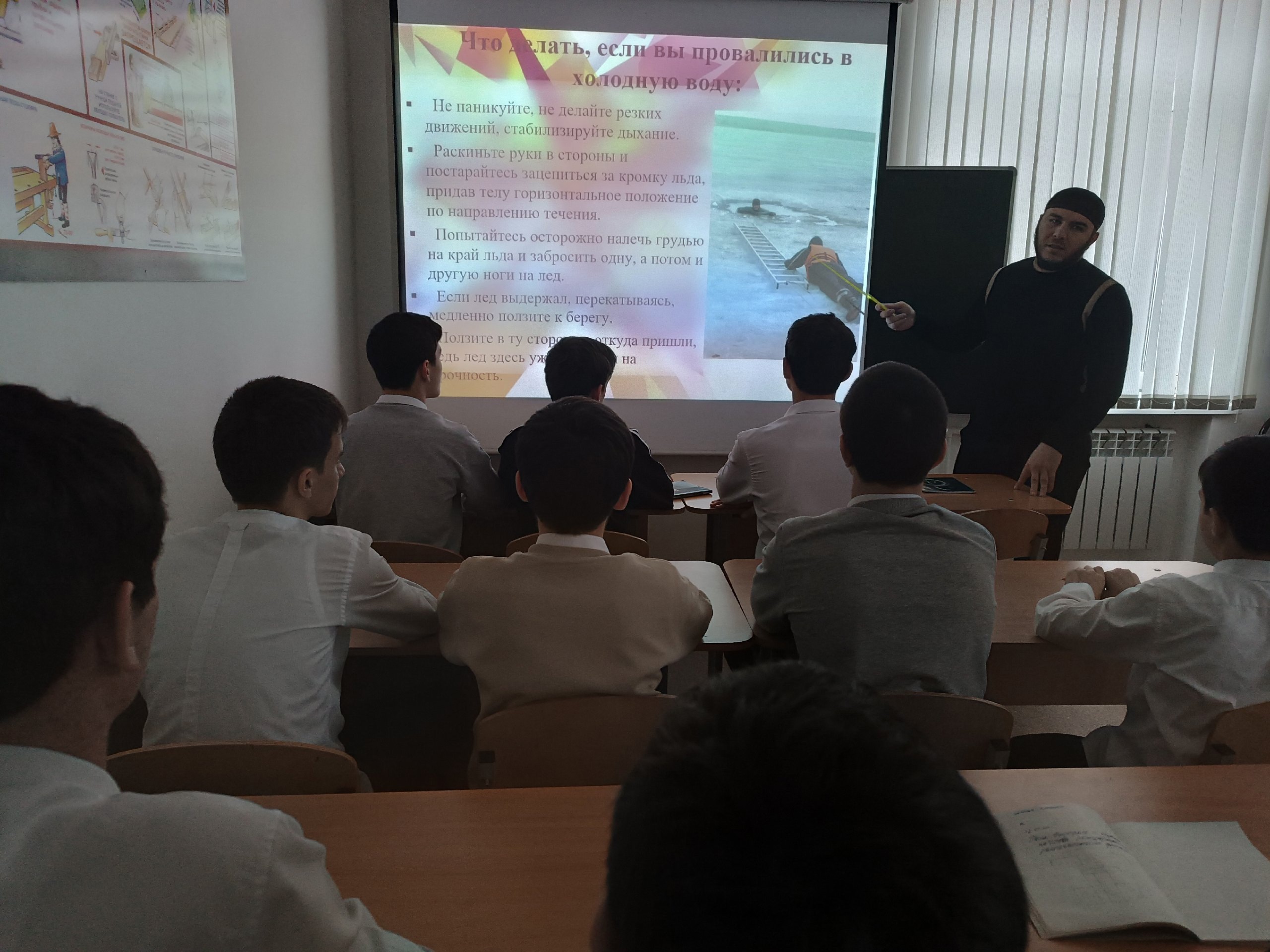 18.11.2024С целью обеспечения безопасности учащихся на водных объектах в осенне-зимний период 2024-2025 учебного года с 18-23 ноября 2024 года в школе с учащимися 1-11 классов были проведены мероприятия: На занятиях учащиеся школы были информированы о мерах предосторожности на водоёмах в осеннее-зимний период; Преподавателями были проведены дополнительные инструктажи и беседы «Правила поведения у водоемов по обеспечению безопасности учащихся на водных объектах в зимний период.