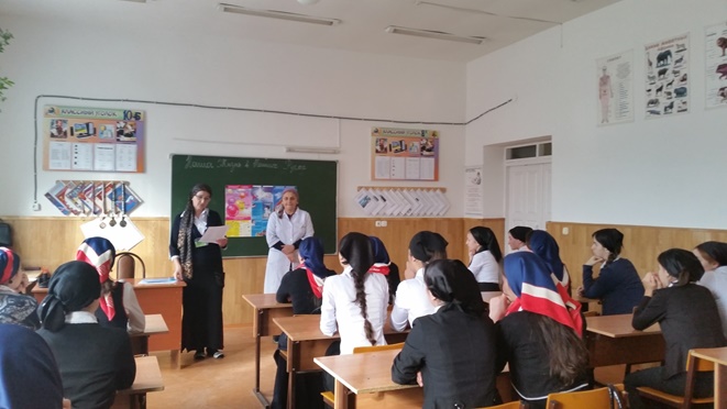 С 24.11.по 29.11.14г. проведены кл. часы «История СПИДа и общемировые тенденции».28.11.14г. среди 9-х классов проведена викторина «Что ты знаешь о СПИДе».29.11.14г. состоялась встреча шк. медсестры Муслимовой Р. с девочками 10-11 классов на тему «СПИД – смерть». Кл. руководителем 10а класса Ташухаджиевой Х.Ш. совместно с учащимися был оформлен информационный стенд, посвящённый Всемирному дню борьбы со СПИДом. Учащиеся рисовали рисунки на тему: «Я выбираю здоровый образ жизни».1.12.14г. проведена тематическая линейка «Мы против СПИДа».